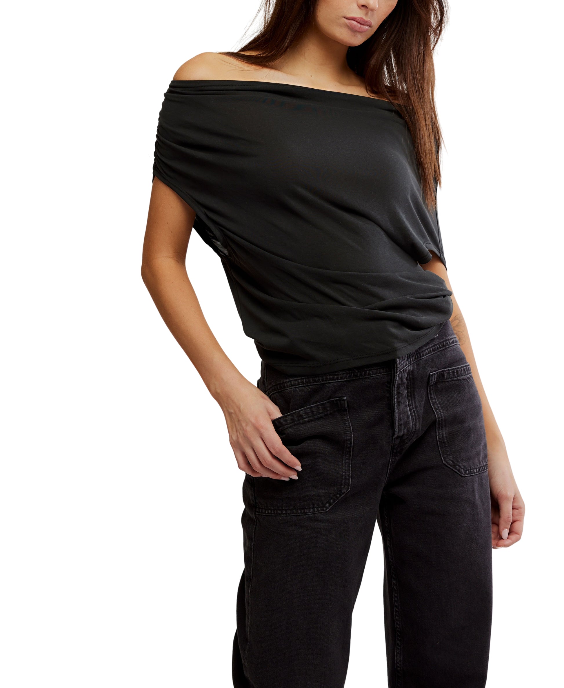 Draped to perfection, this off-the-shoulder top is featured in the perfect slinky jersey that delicately creates the perfect laidback shape.