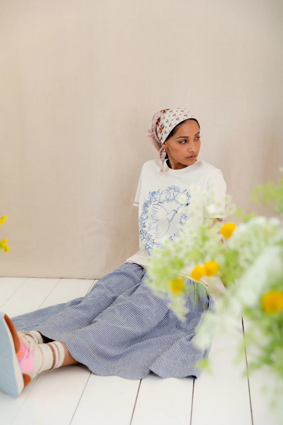 We love this special organic cotton crew neck T, with a placement print that was hand-painted by our lovely friend.