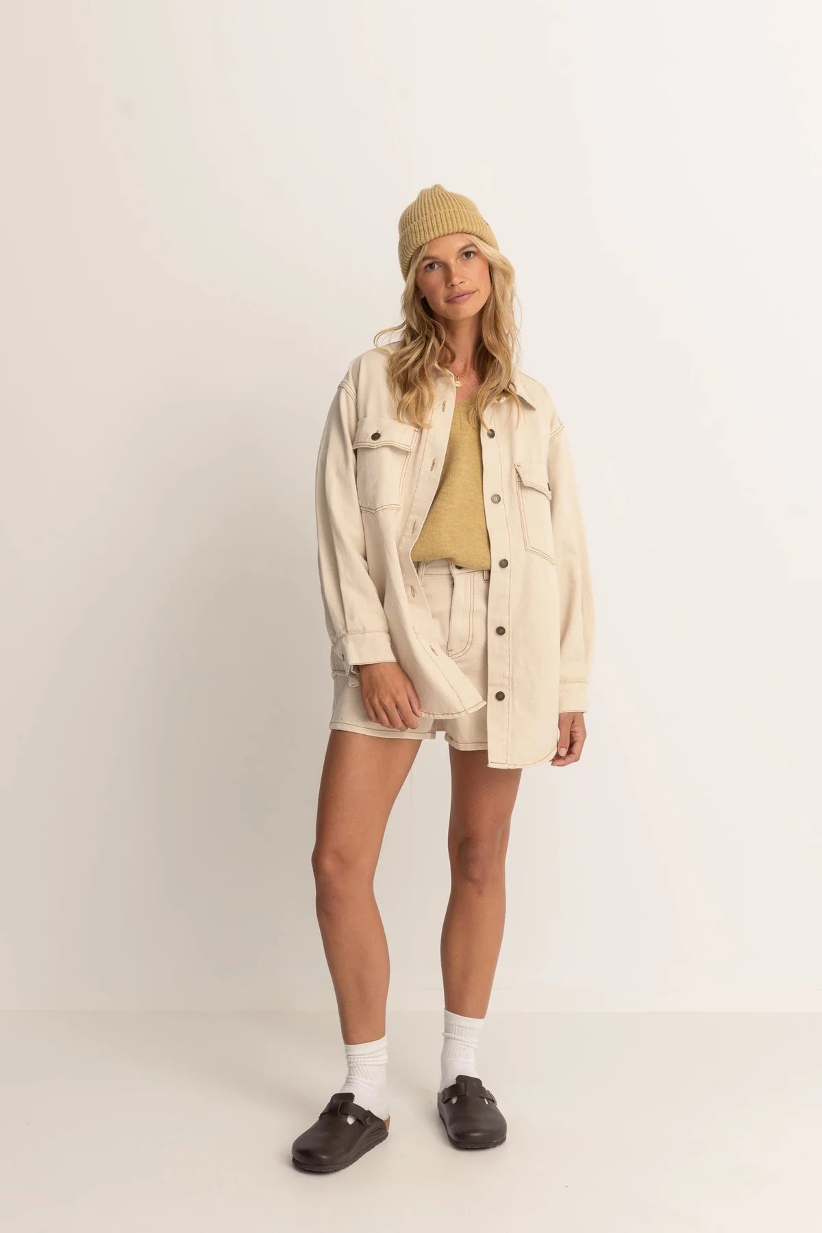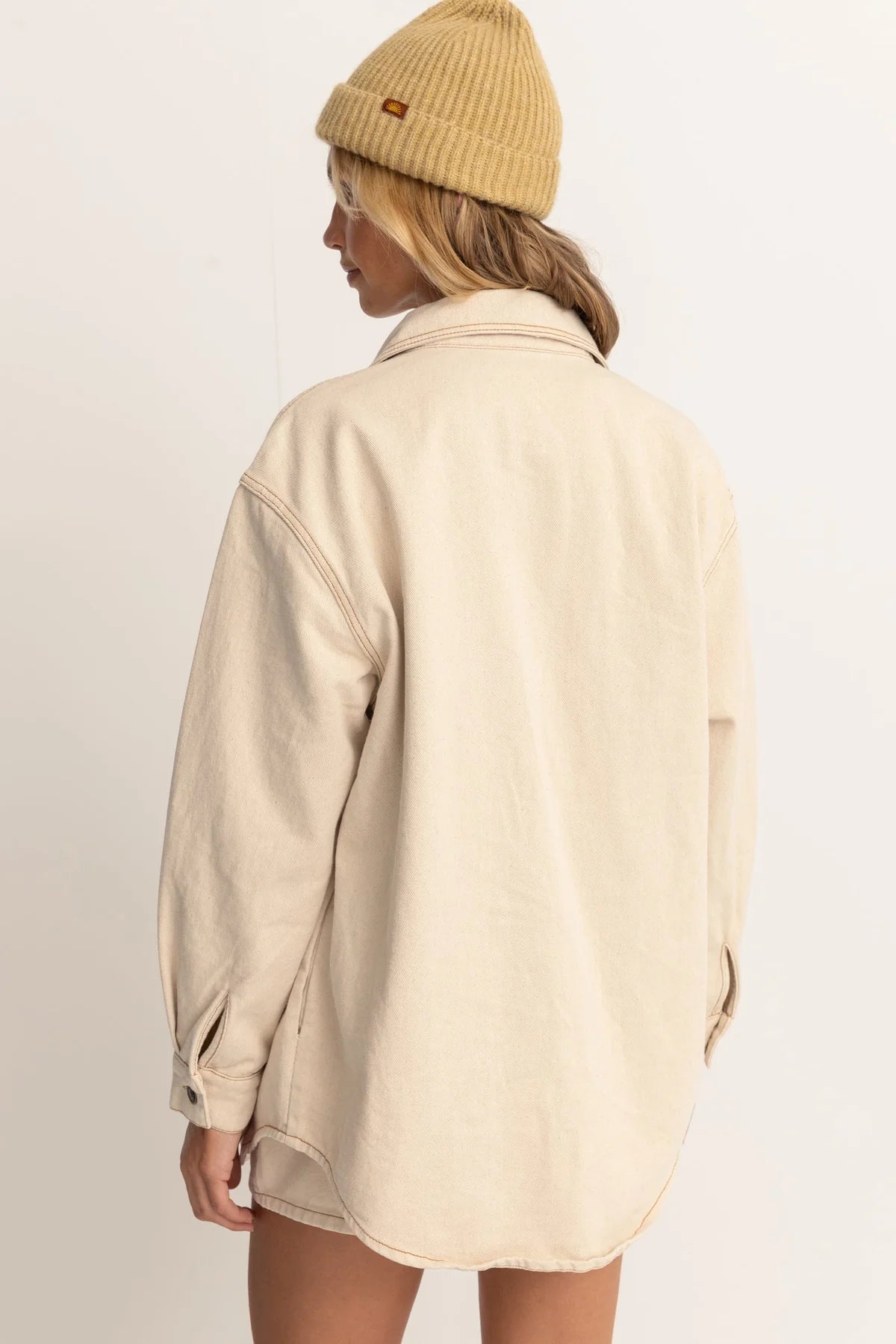 The Claude Drill Shacket is ideal for layering on chilly mornings as you chase the sunrise. Its oversized, warm cotton make it a cosy and stylish choice for all seasons. Now available in a light, loose fit for the celebration of our coastal roots and the dawn of nostalgic surf heritage.