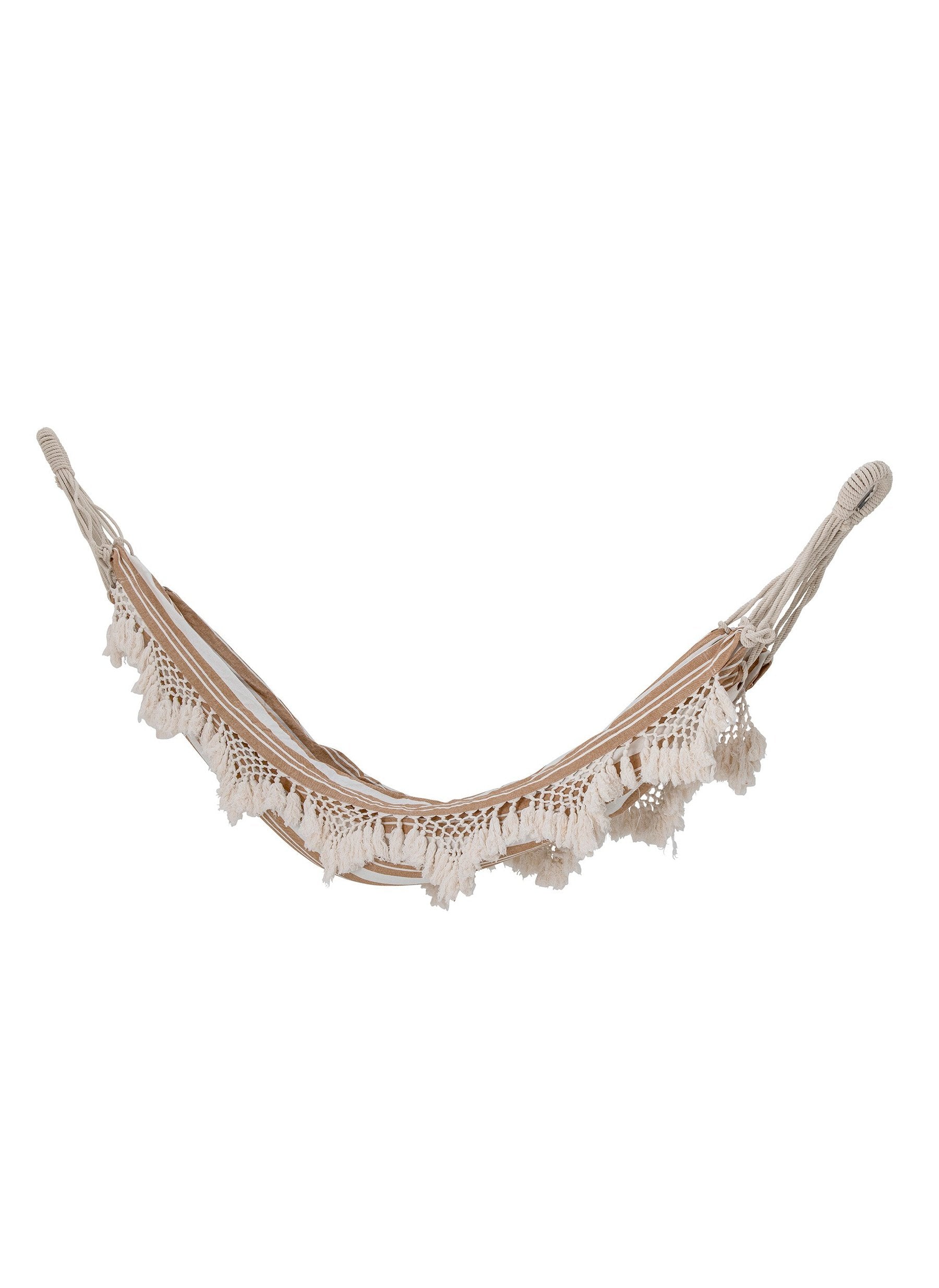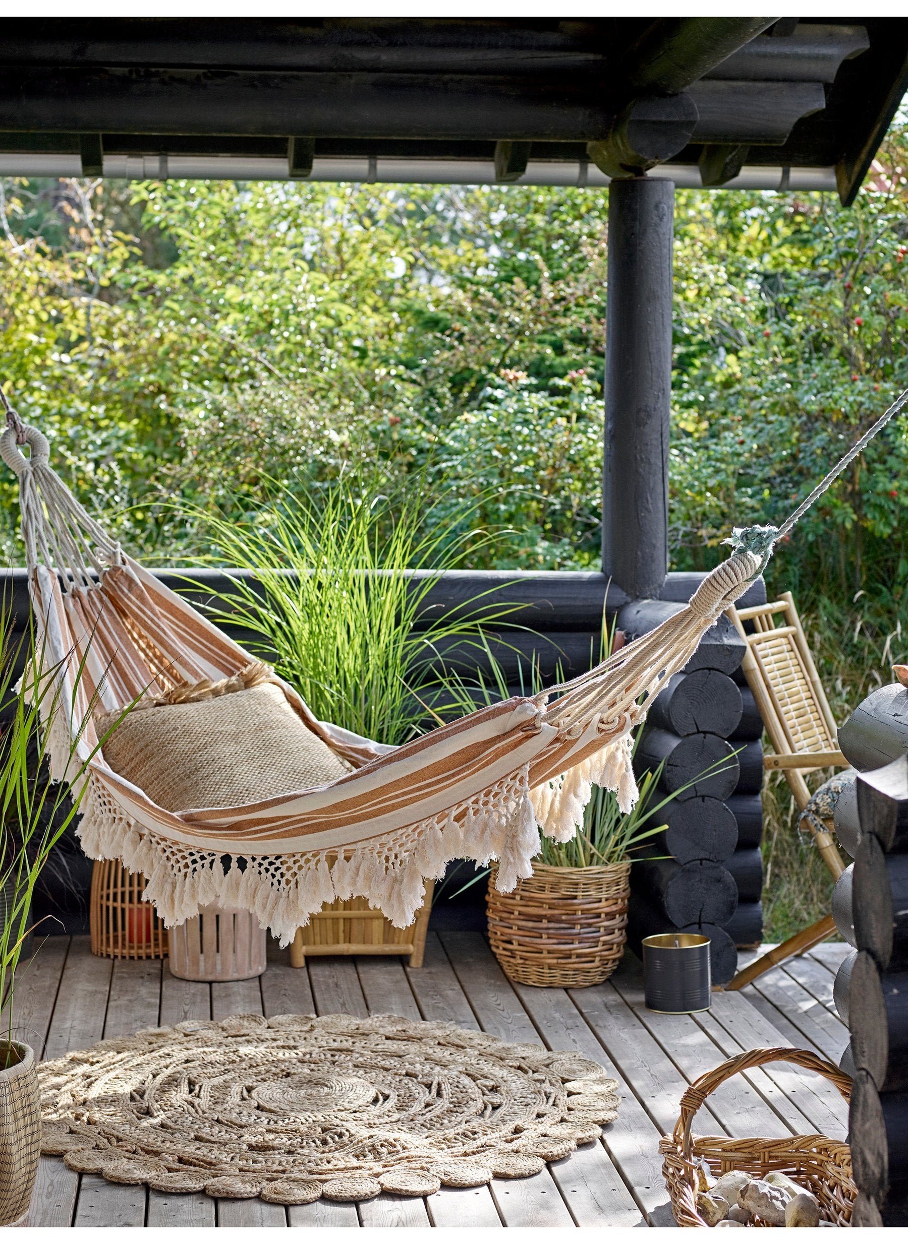 The Cruz Hammock is made in woven striped cotton in a beautiful soft coloured combo. The Hammock has macrame edges with a lot of amazing details! Just perfect for your favourite outdoor spot. This product is certified according to STANDARD 100 by OEKO-TEX®. The certification guarantees that the product is tested and free of substances that may be harmful to health and the environment.