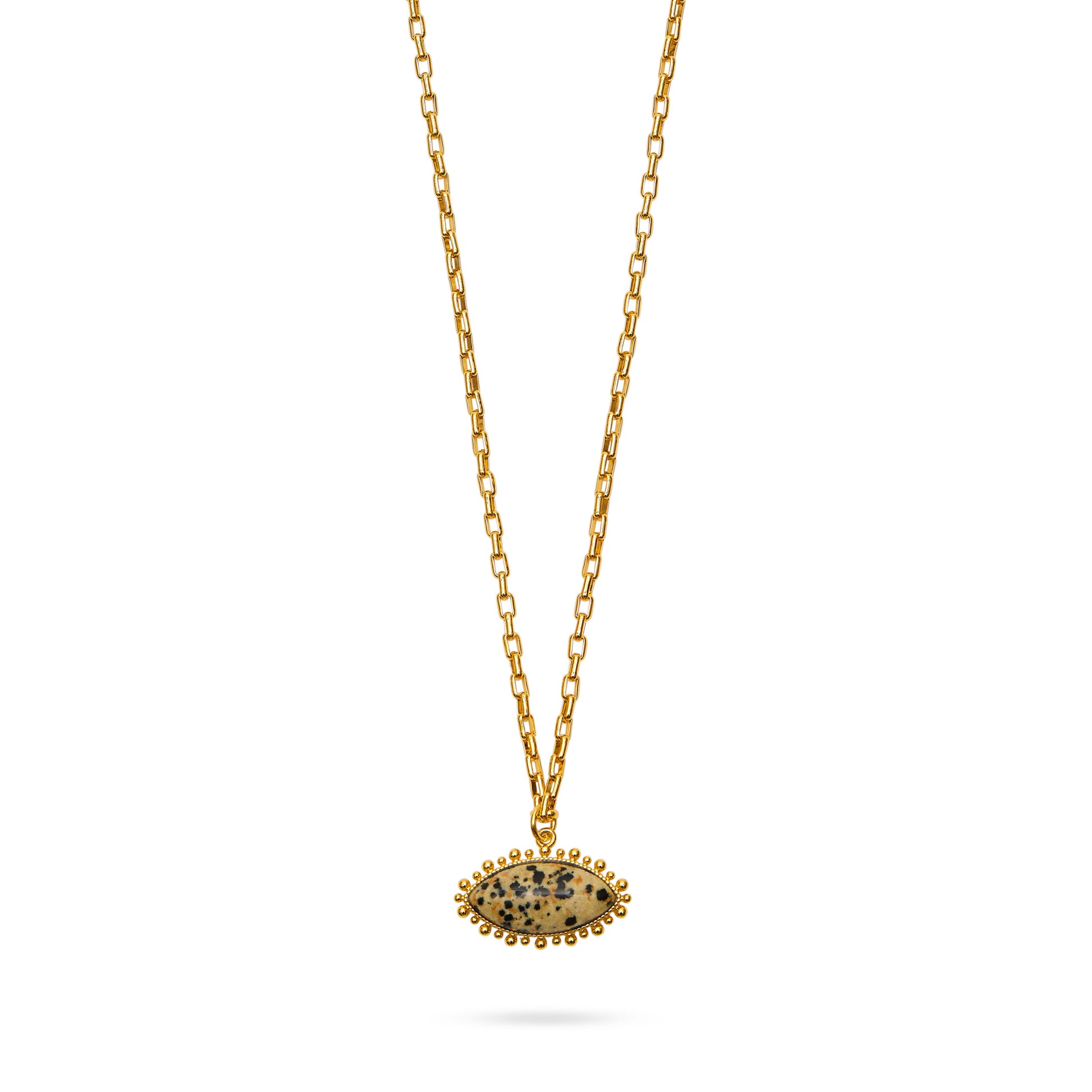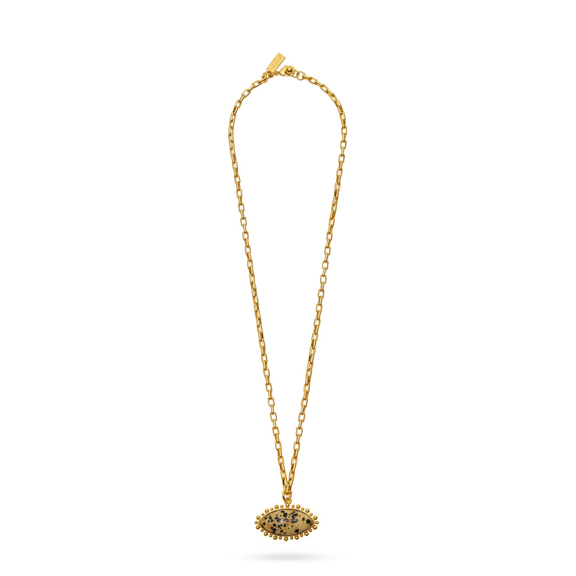 Ward off negativity and bad intentions in style with the Dalmatian Jasper Eye Pendant Necklace. This Talis Chains signature pendant is perfect for wearing solo or layering into your daily “neck mess”. Add it to your jewellery collection to effortlessly elevate your everyday look.