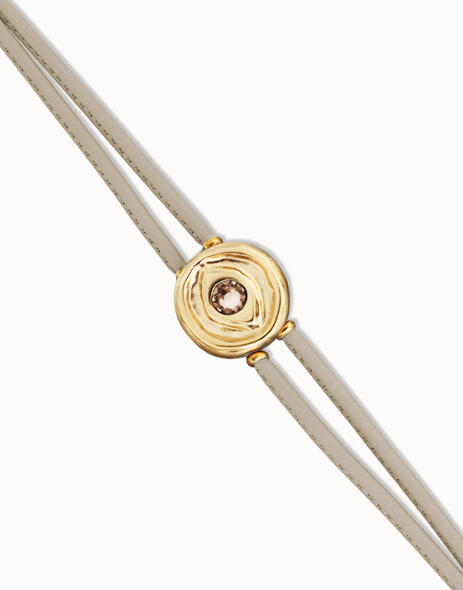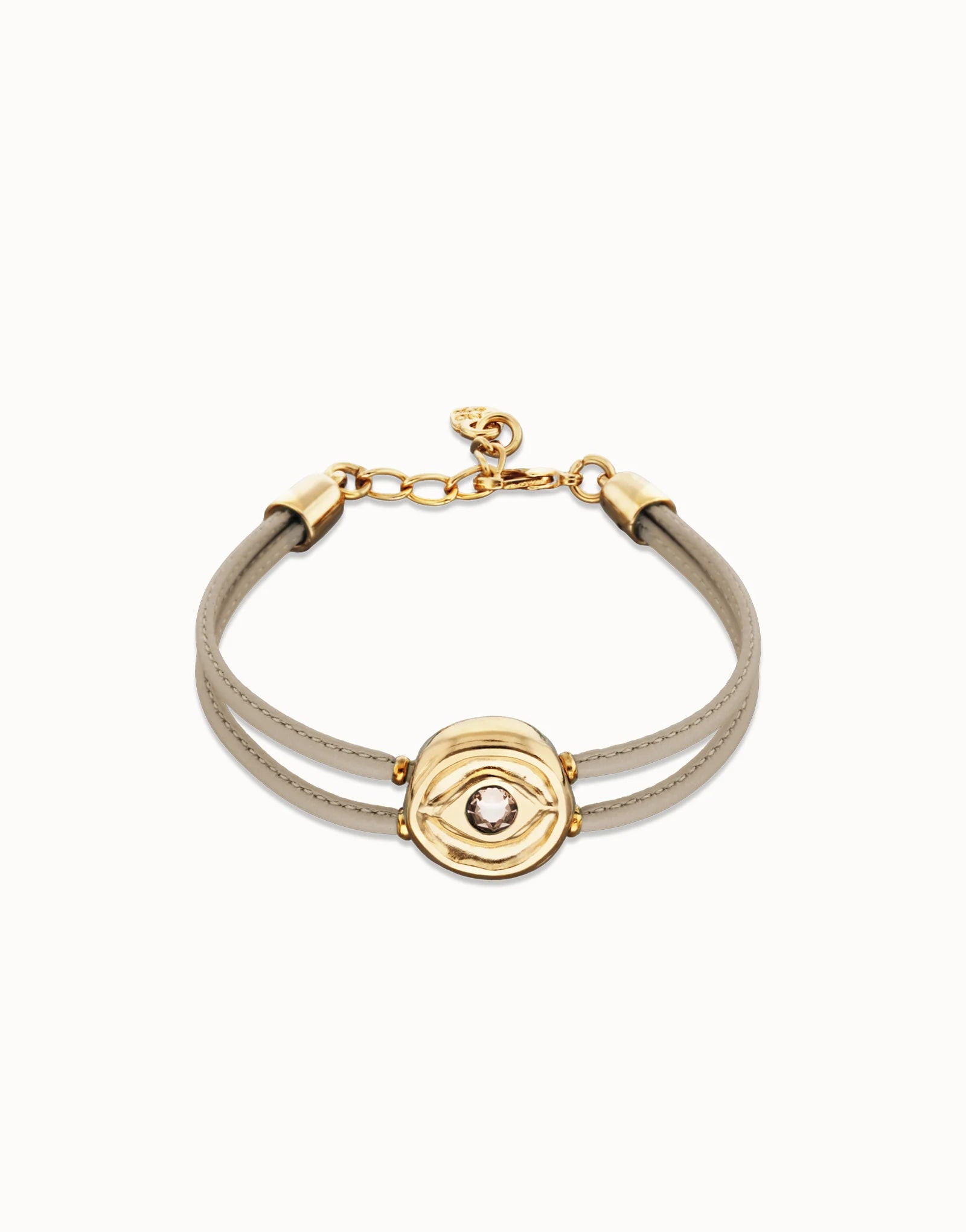 Double ivory leather bracelet with gold eye. There are people who are visionary, whose intuition is their compass. Ser intuitiva takes into consideration that mystical side of us, allowing us to bring out our hidden self and show it to the world.