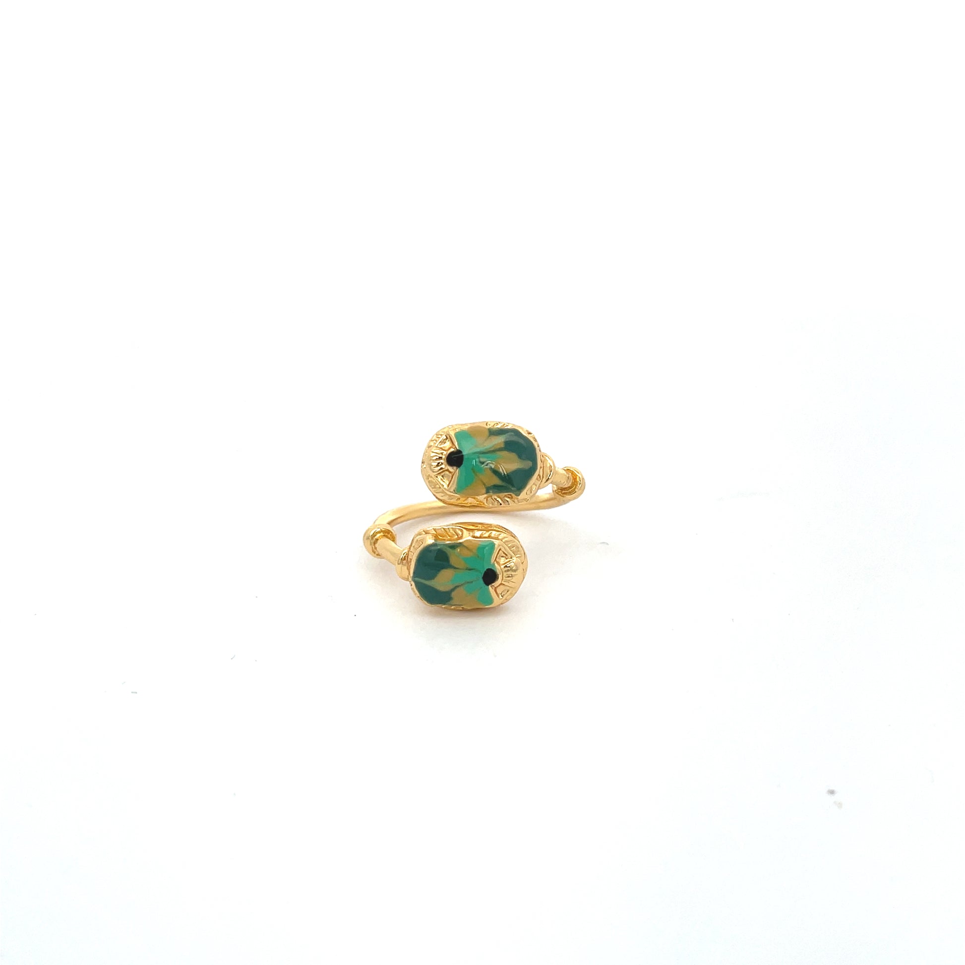 Gold plated ring, embellished with two beetles delicately engraved and enamelled.