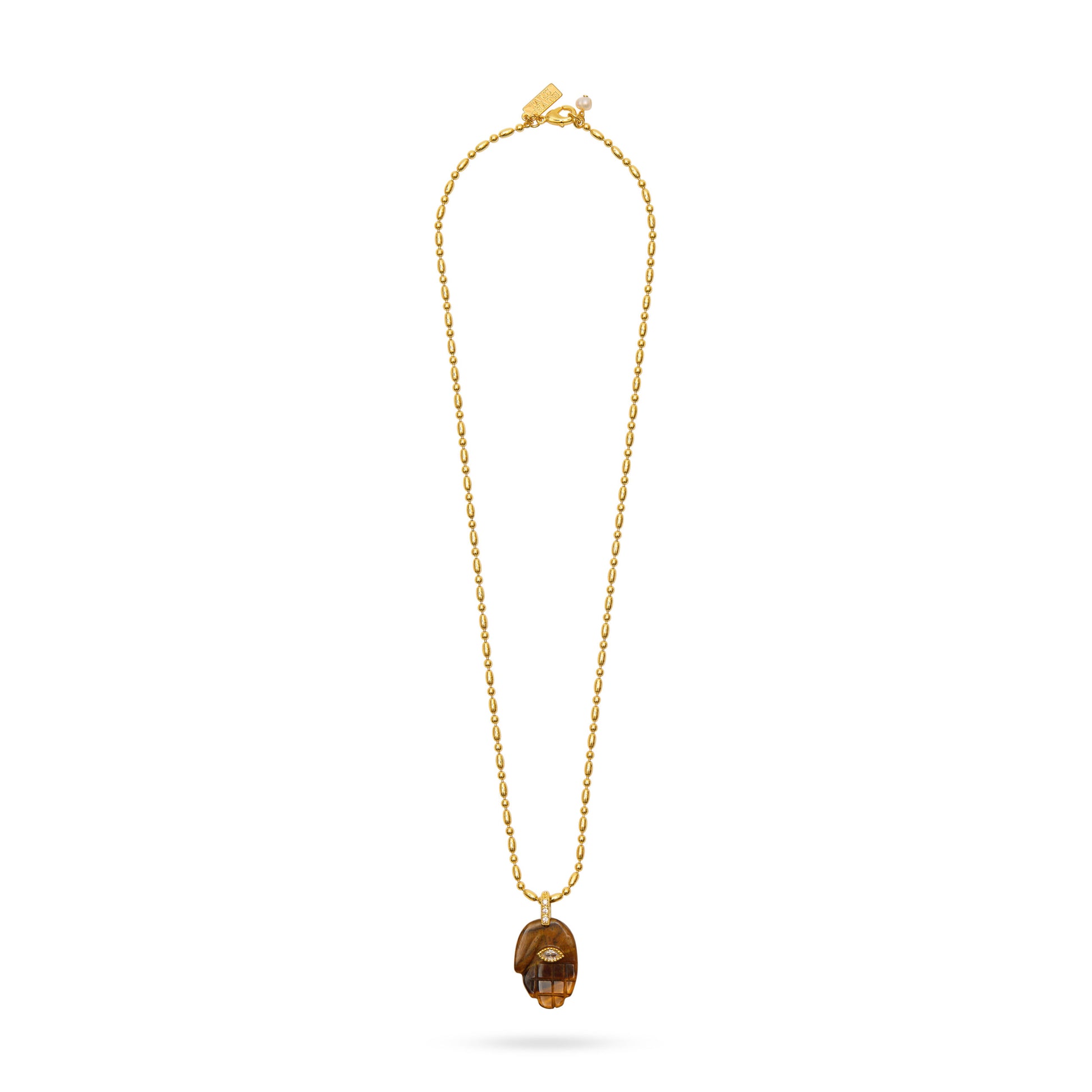 Hamsa Hand Pendant Necklace - Tiger’s Eye