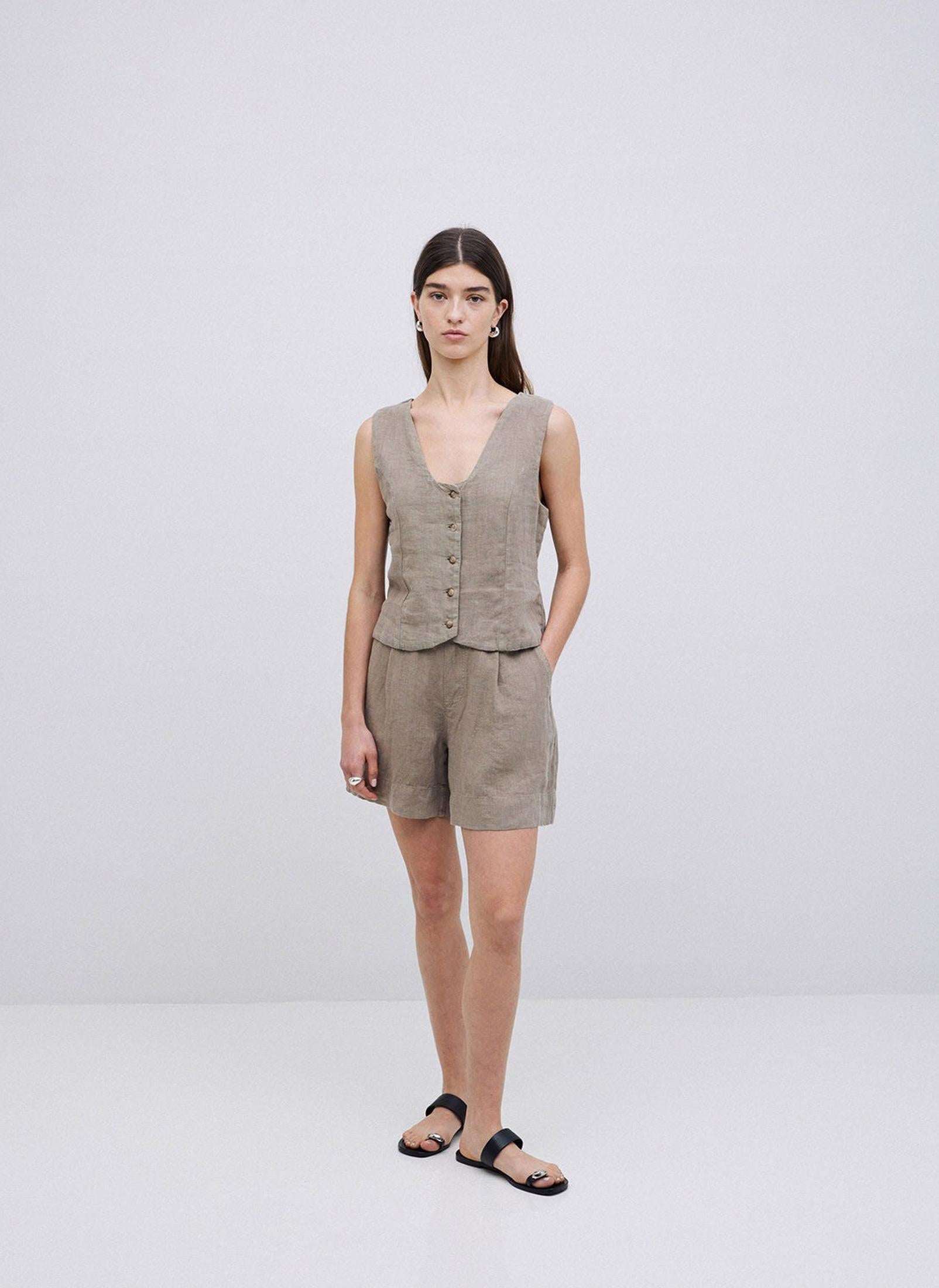 Khaki Linen Shorts
