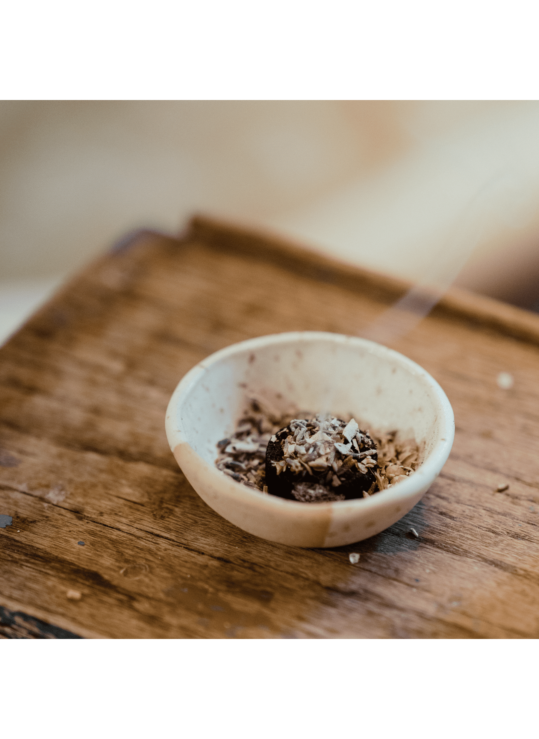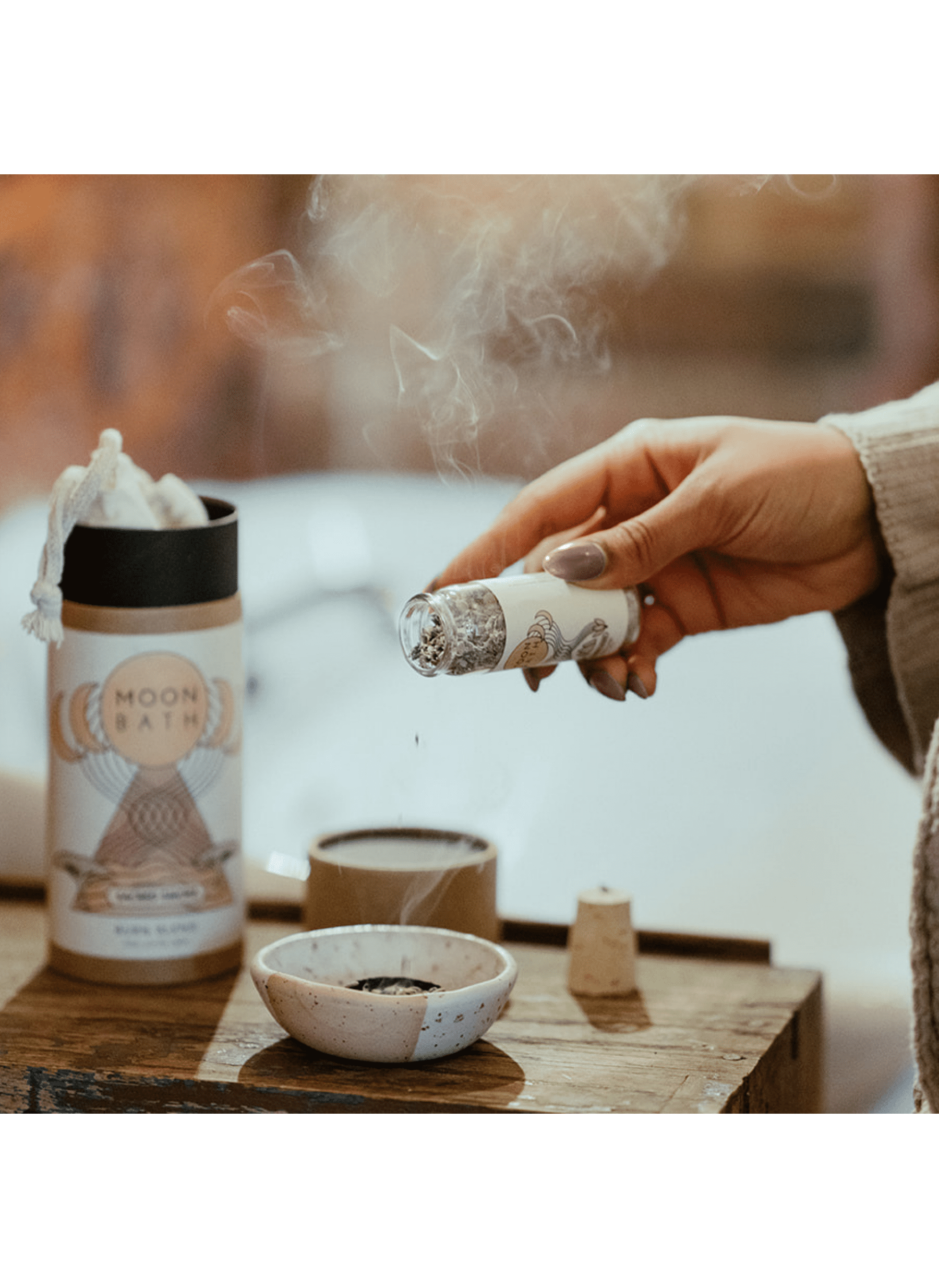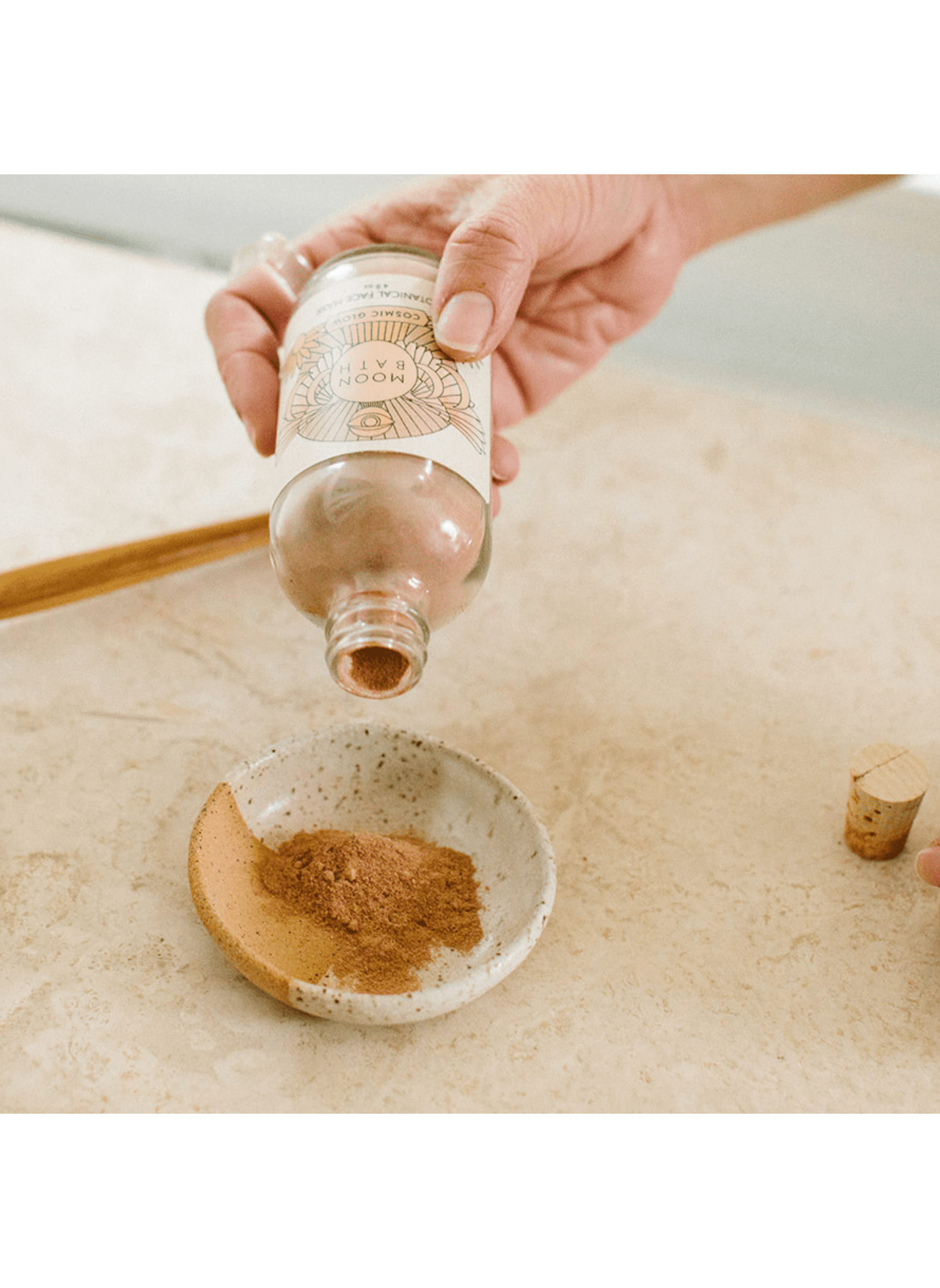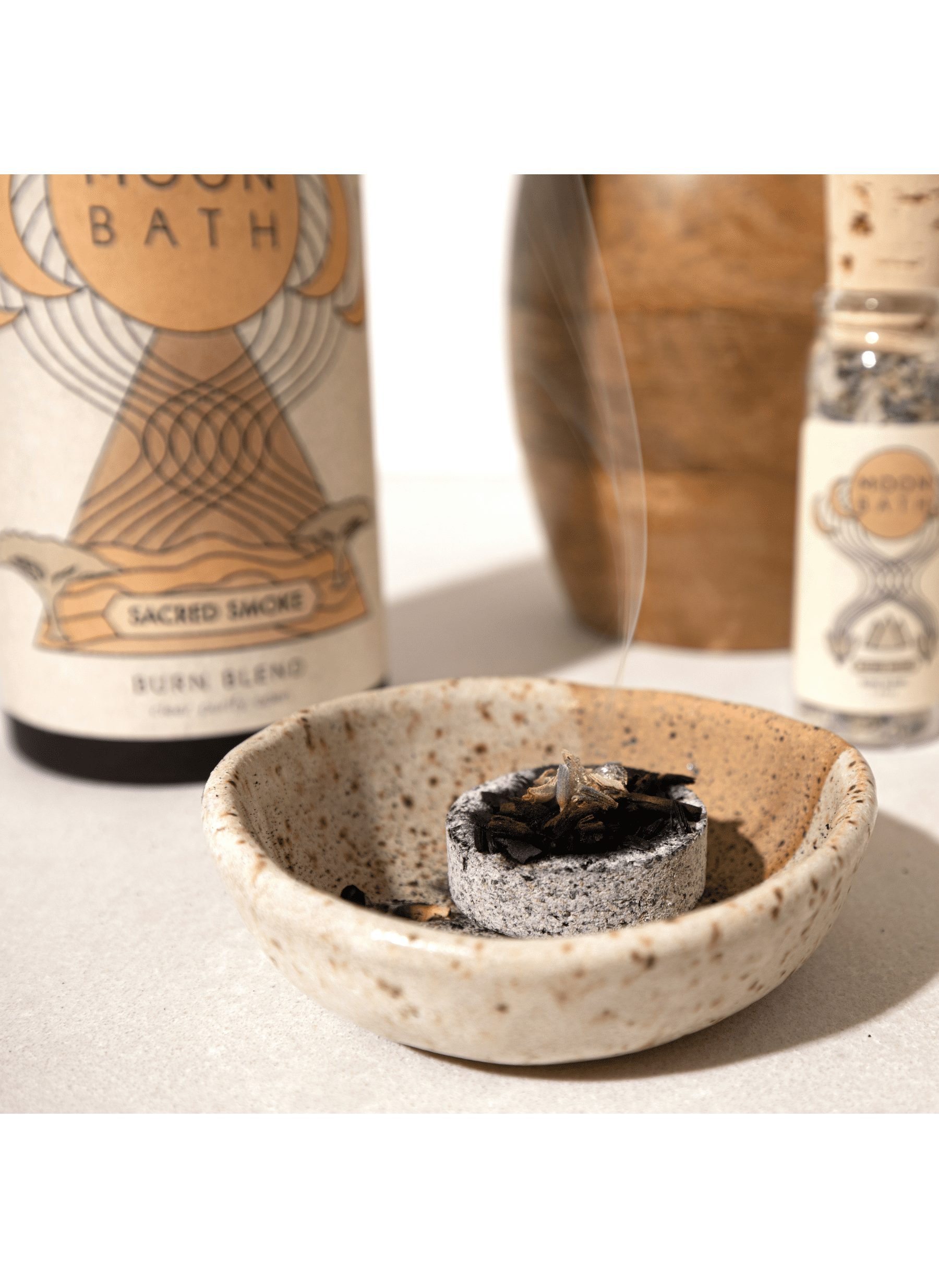Burn Sacred Smoke or blend a Cosmic Glow Botanical Face Mask in this simple and beautiful 3-inch ceramic Blessing Bowl intentionally handmade for Moon Bath by Bridget Dorr in her hometown of Boulder, Colorado USA.