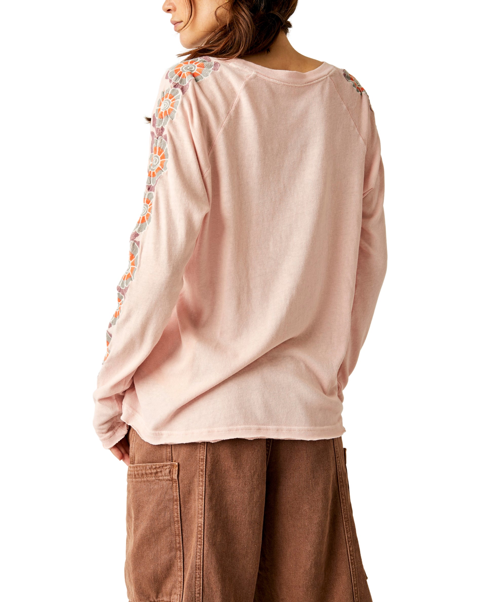 Forever essential with an effortless touch of texture, this stunning long-sleeve tee features sweet floral embroidery at the sides for added dimension.