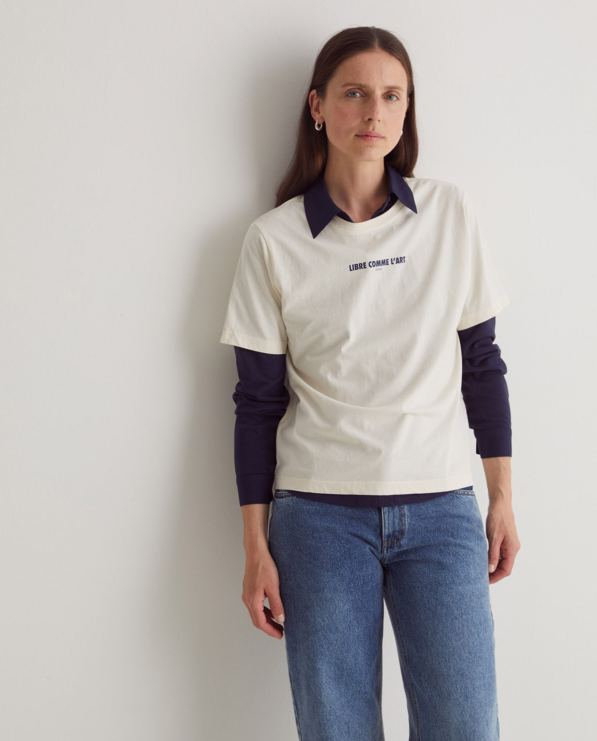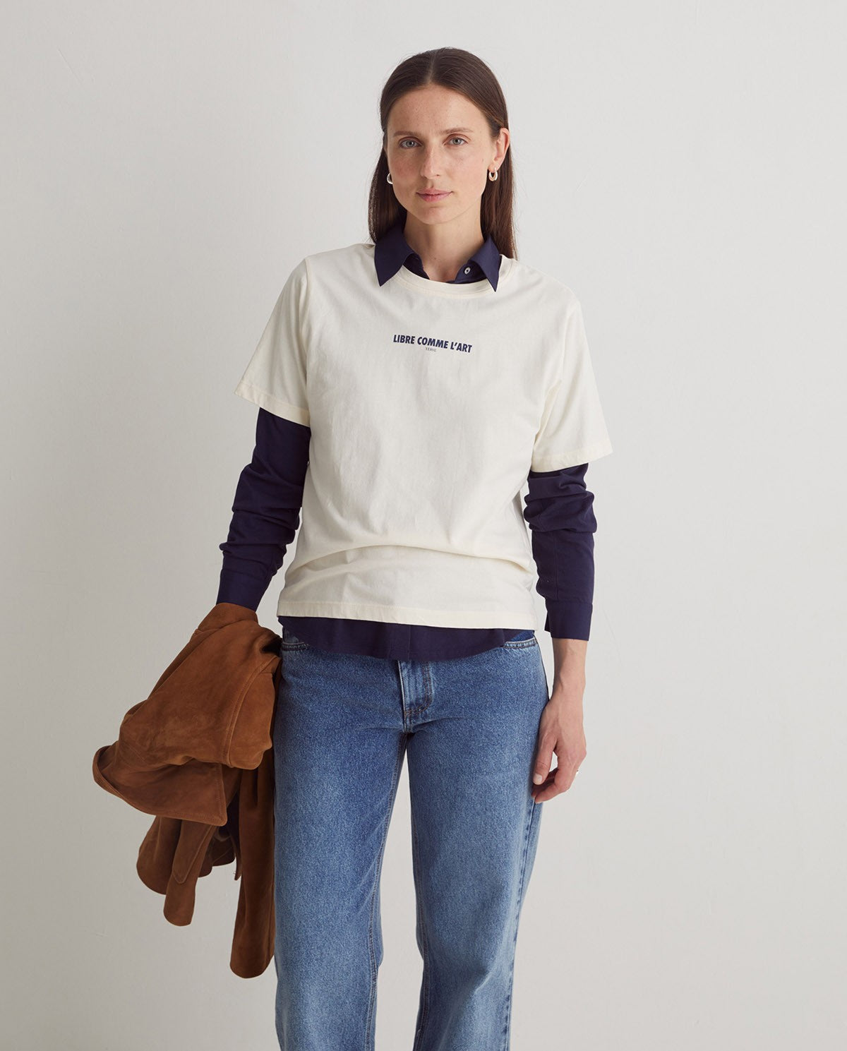 100% cotton T-shirt. Printed slogan on the chest. Regular fit. Round neckline. Short sleeves.