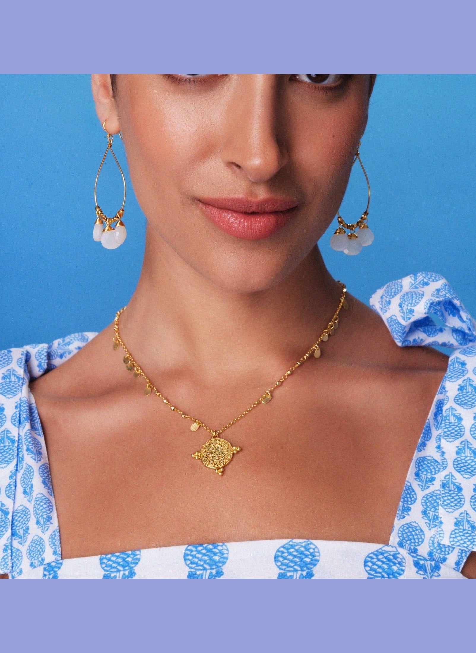 The Santorini Short Necklace was designed in Athens as part of the Ashiana x Anna Mavridis collaboration collection designed with lifestyle, fashion and travel influencer Anna Skoog @annamavridis