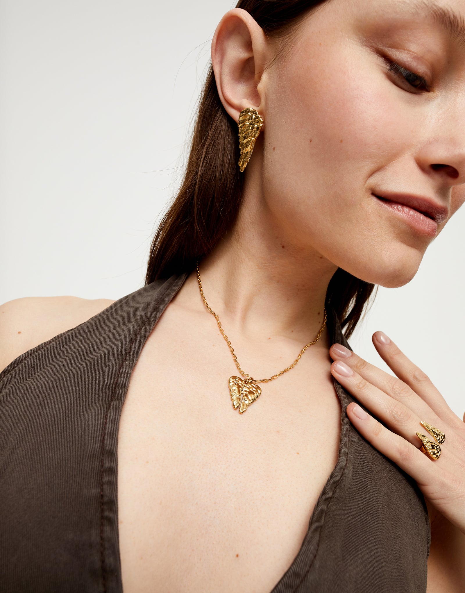 This short necklace blends delicacy and strength in a symbolic piece. Its gold-finish wing pendant represents the power to fly high, even when the road gets tough. Part of the Ser Invencible collection—an ode to resilience and the power to overcome.