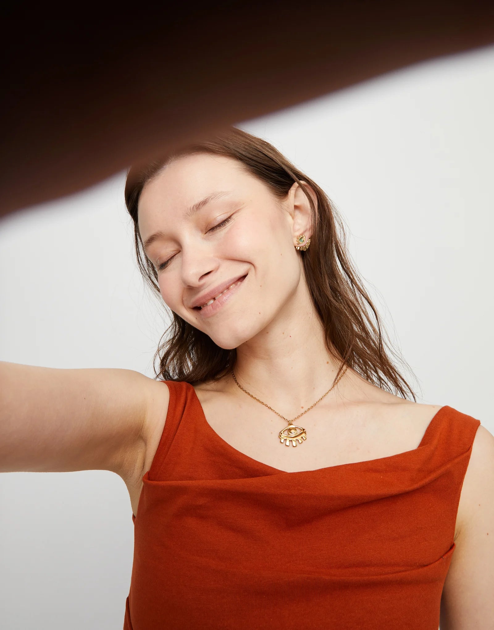 Short gold necklace with small eye. There are people who are visionary, whose intuition is their compass. Ser intuitiva takes into consideration that mystical side of us, allowing us to bring out our hidden self and show it to the world.