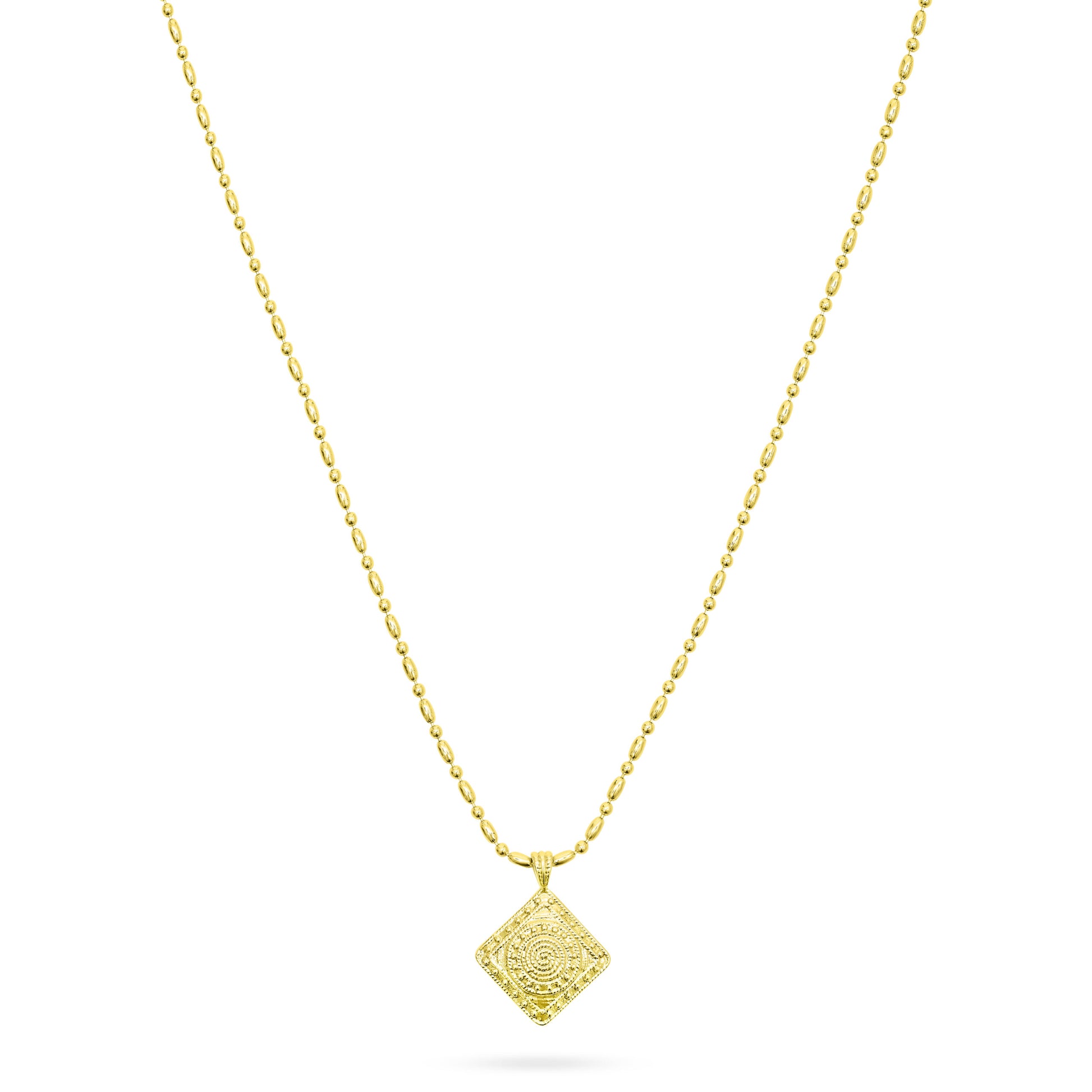 The perfect goal pendant to add to your jewellery neck mess this season. Sat on a longer gold chain the hammered details on the pendant adds extra texture to any stack.