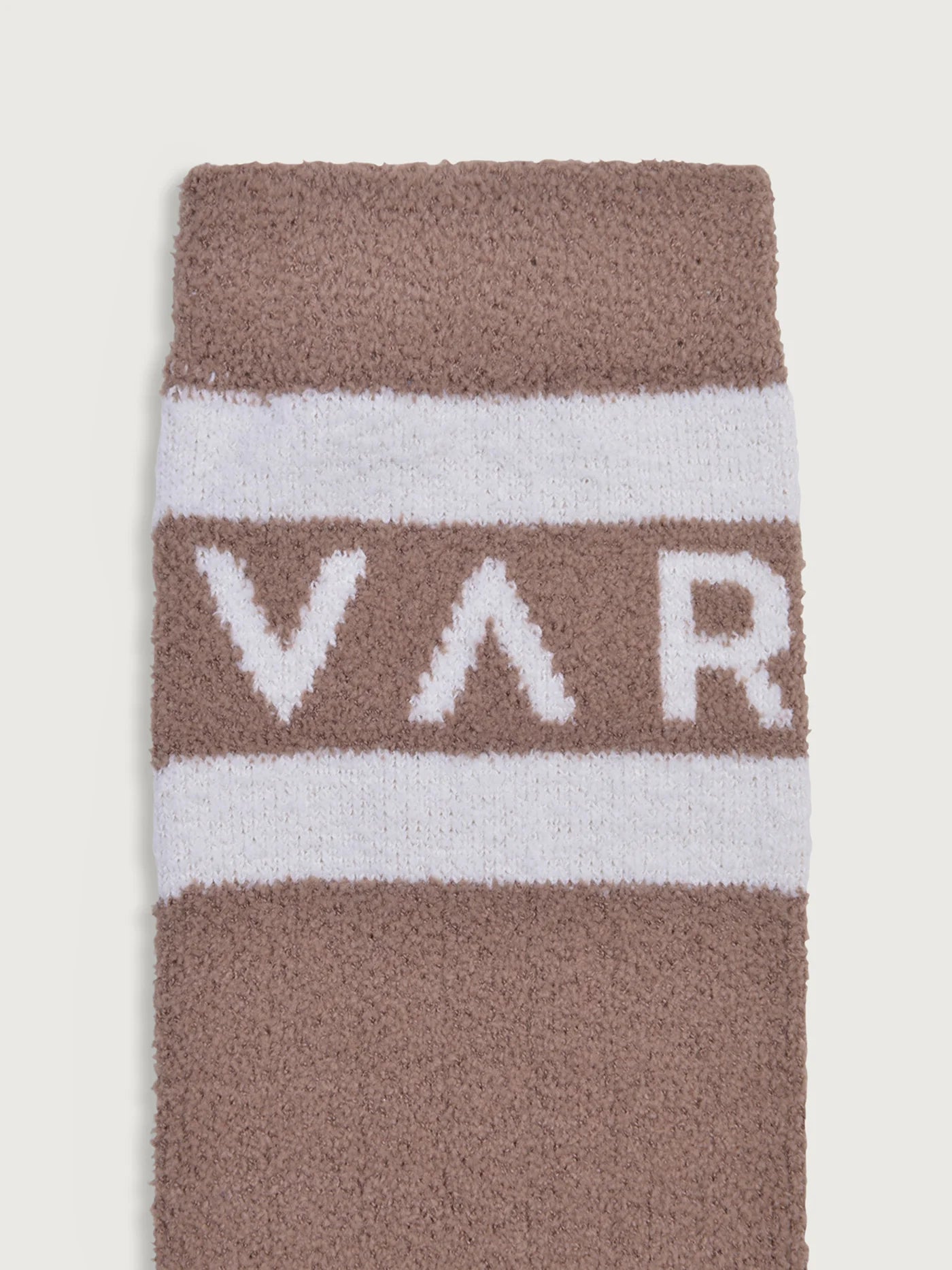 Woven in a boucle-effect yarn, the Spencer socks feature a classic Varley logo stripe and contrast heel and toe.