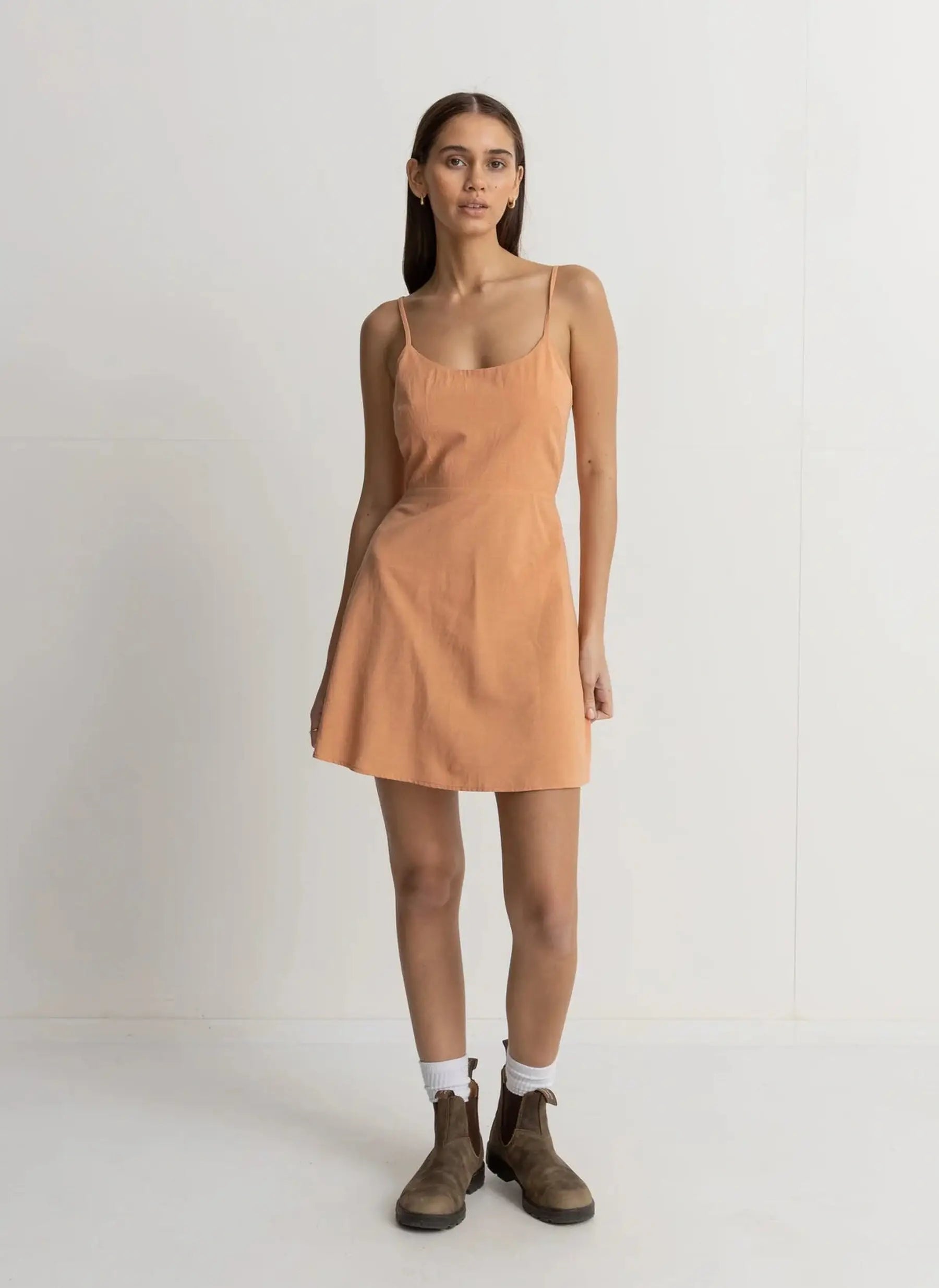 The Sundown Mini Dress in a timeless peach colour is made of a lightweight blend of cotton and linen, perfect for warm summer days. With adjustable straps and a flattering elastic backline, this dress will fit you just right.